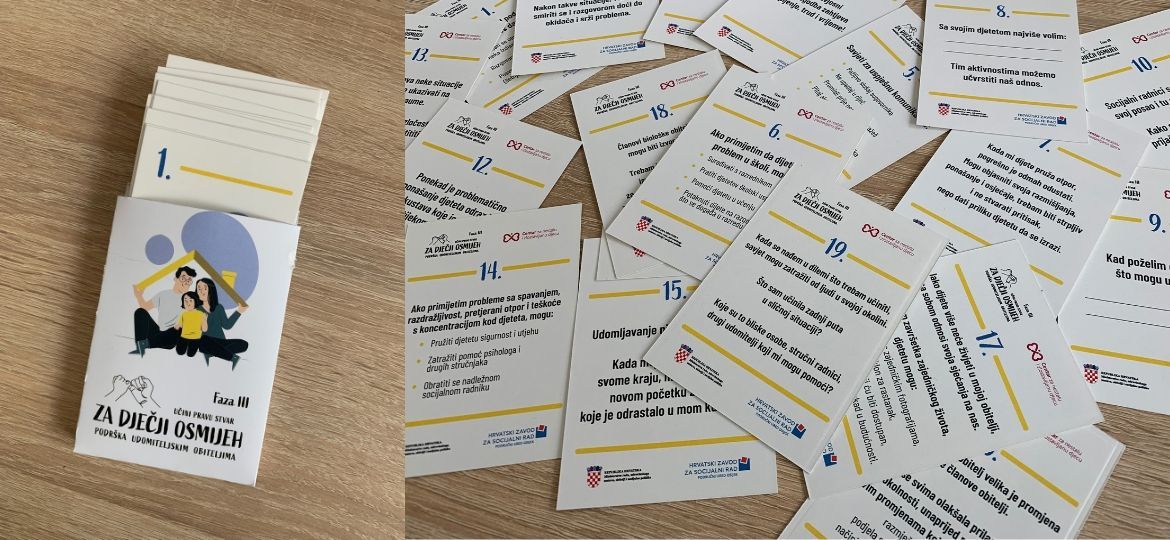 U okviru projekta “Učini pravu stvar za dječji osmijeh – faza III”, Centar za nestalu i zlostavljanu djecu predstavlja kartice podrške za udomitelje, dizajnirane tijekom prve godine provedbe projekta. Svake godine proizvodit će se po 25 setova, a svaki set uključuje 20 kartica s praktičnim savjetima, pitanjima, vježbama i aktivnostima koje potiču strukturirano provođenje slobodnog vremena, zajedničko druženje i jačanje odnosa.